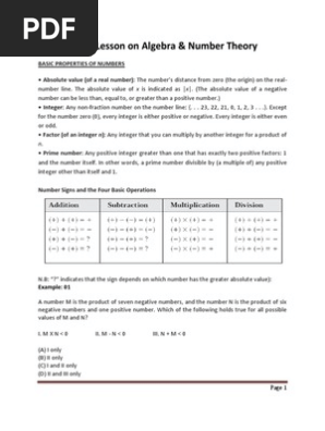 Maths Lesson On Algebra Number Theory Pdf Fraction Mathematics Numbers